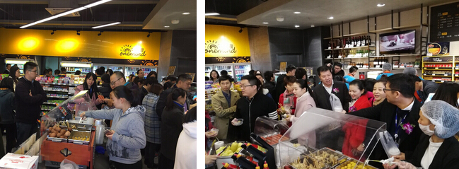 除了常規(guī)的商品陳列區(qū)和收銀區(qū)之外,萬麥便利店內(nèi)還設(shè)計(jì)了環(huán)形冷鮮區(qū)、自助熟食區(qū)、面包制作區(qū)、促銷堆頭區(qū),區(qū)域設(shè)計(jì)十分獨(dú)特,開啟了便利店經(jīng)營的新模式。