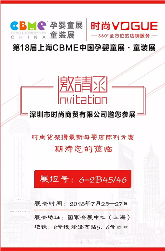 在此次2018 CBME中國孕嬰童展上,【時尚貨架】即將展出我們最新設計的母嬰店陳列道具,屆時定會讓廣大參展觀眾眼前一亮!歡迎大家前來時尚展位參觀。
