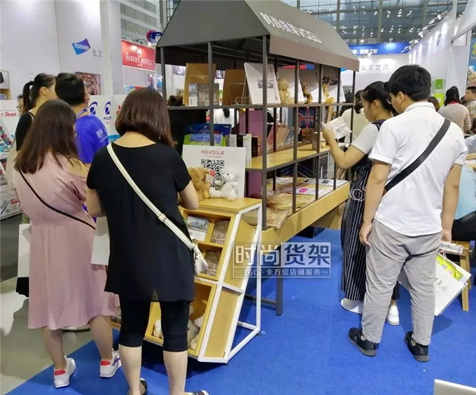 這里不不僅有權威的交流會、豐富的書籍、創意的文具,還有一間小型“文具書店”——【時尚貨架】,我們將多種書店展示貨架帶到展會上,讓參展觀眾可以親自了解觸摸到我們的貨架產品。