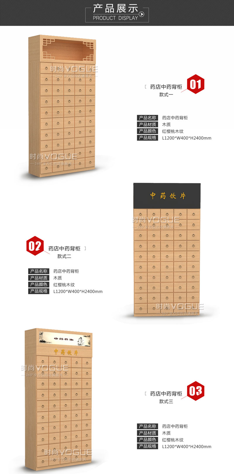【產(chǎn)品名稱(chēng)】紅櫻桃木紋中藥柜/藥店木質(zhì)中藥背柜/高檔中藥柜
