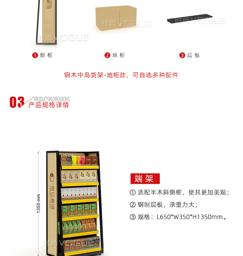 - 產(chǎn)品描述:本款木背板食品貨架是便利店貨架廠家最新推出的一款便利店貨架,底部地柜設(shè)計(jì)增加儲(chǔ)物功能。
