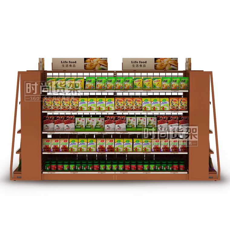 此款生活用品貨架是深圳貨架廠--時尚貨架為便利店生活用品區打造的一款實用性很強的便利店生活用品中島貨架,如需了解日用品區更多便利店貨架,請咨詢客服!