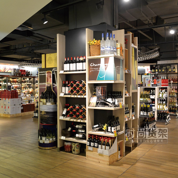 超市貨架_木質紅酒包柱貨架