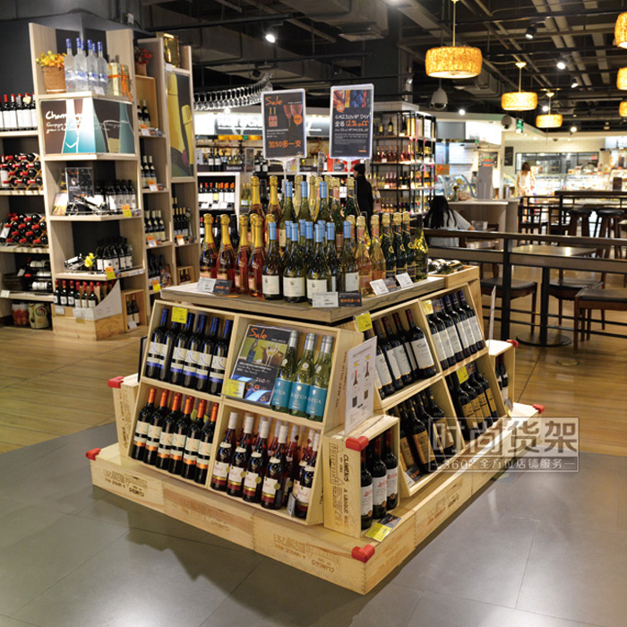 超市貨架_木質紅酒促銷桌