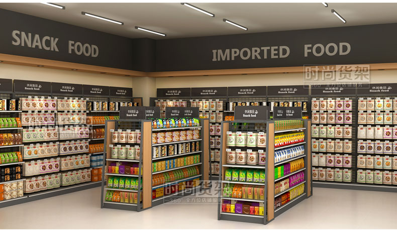 此款超市貨架是深圳貨架廠【時尚貨架】專為超市食品區域打造的一款通透性更強的網背板零食貨架。更多超市貨架可點擊http://www.hydelad.com/supermarket/spzsq/,如需采購超市貨架,請咨詢客服!
